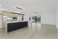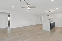 600mm x 600mm ceramic tiles in kitchen, living, dining, and alfresco.